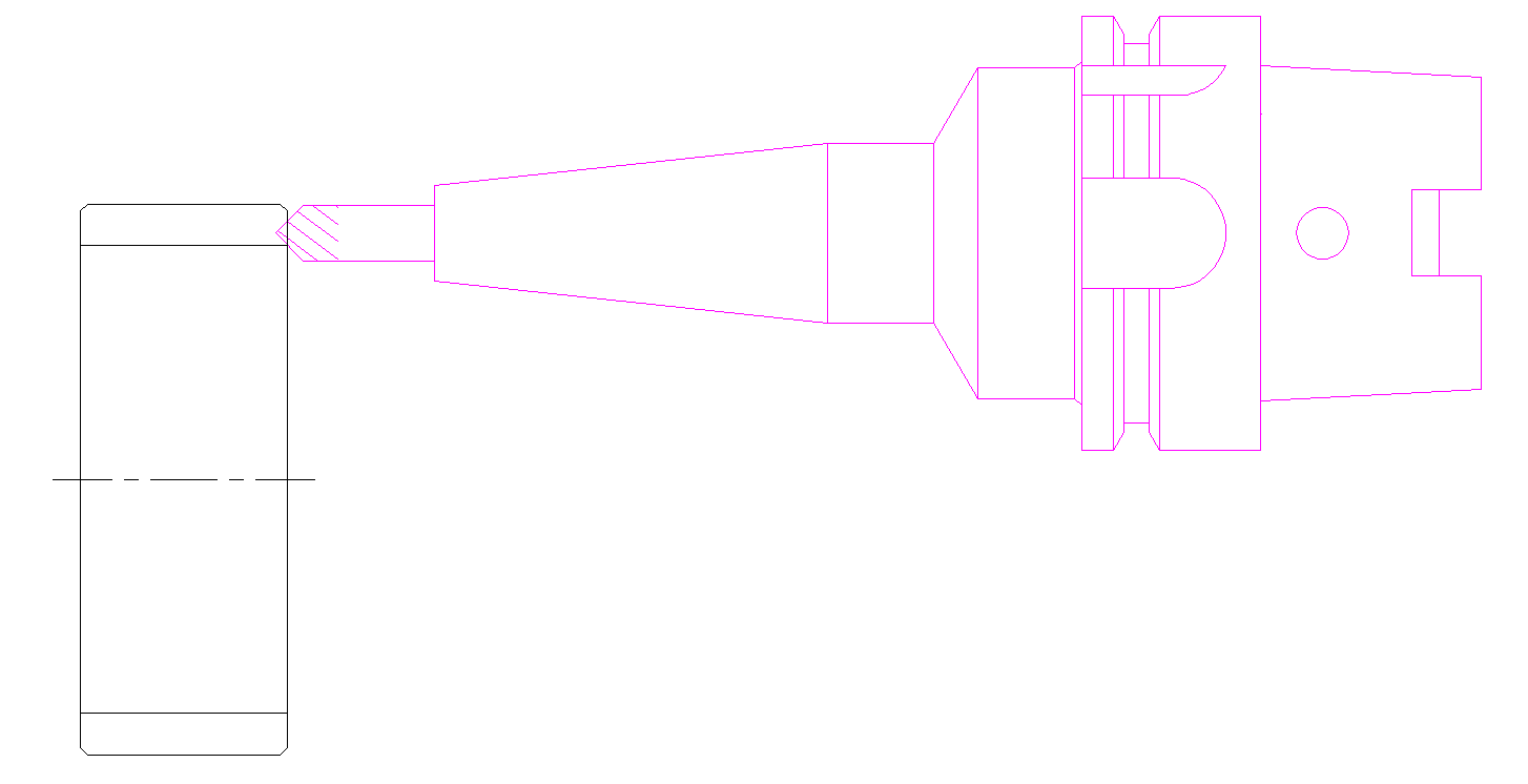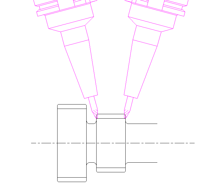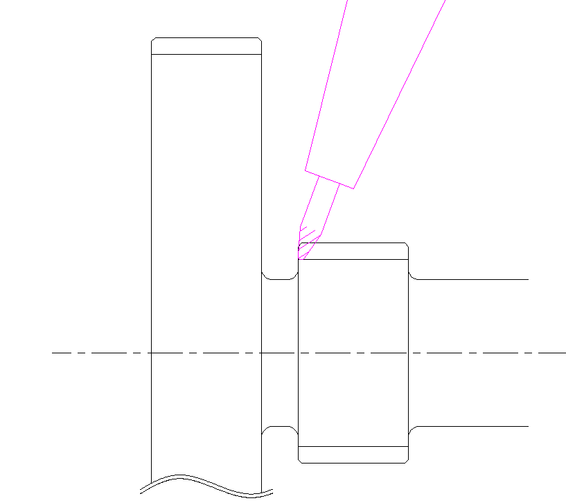 この面取り方法では下図のように径方向からアプローチして面取りを行います。